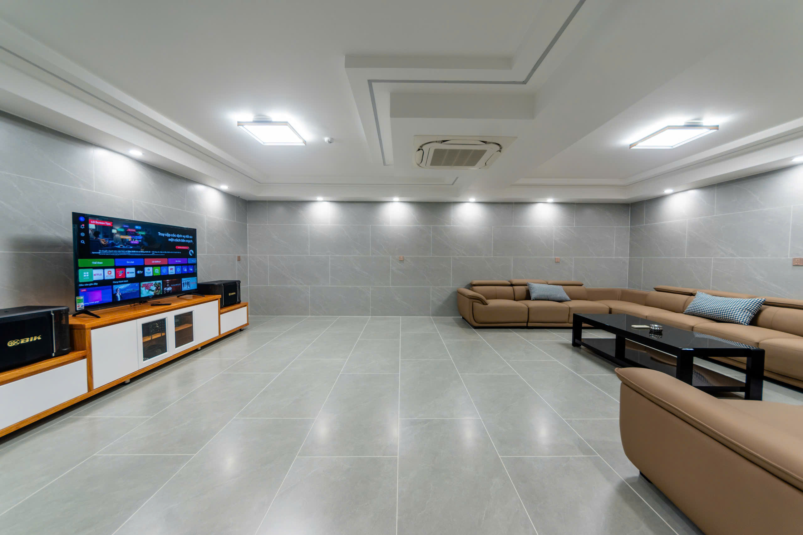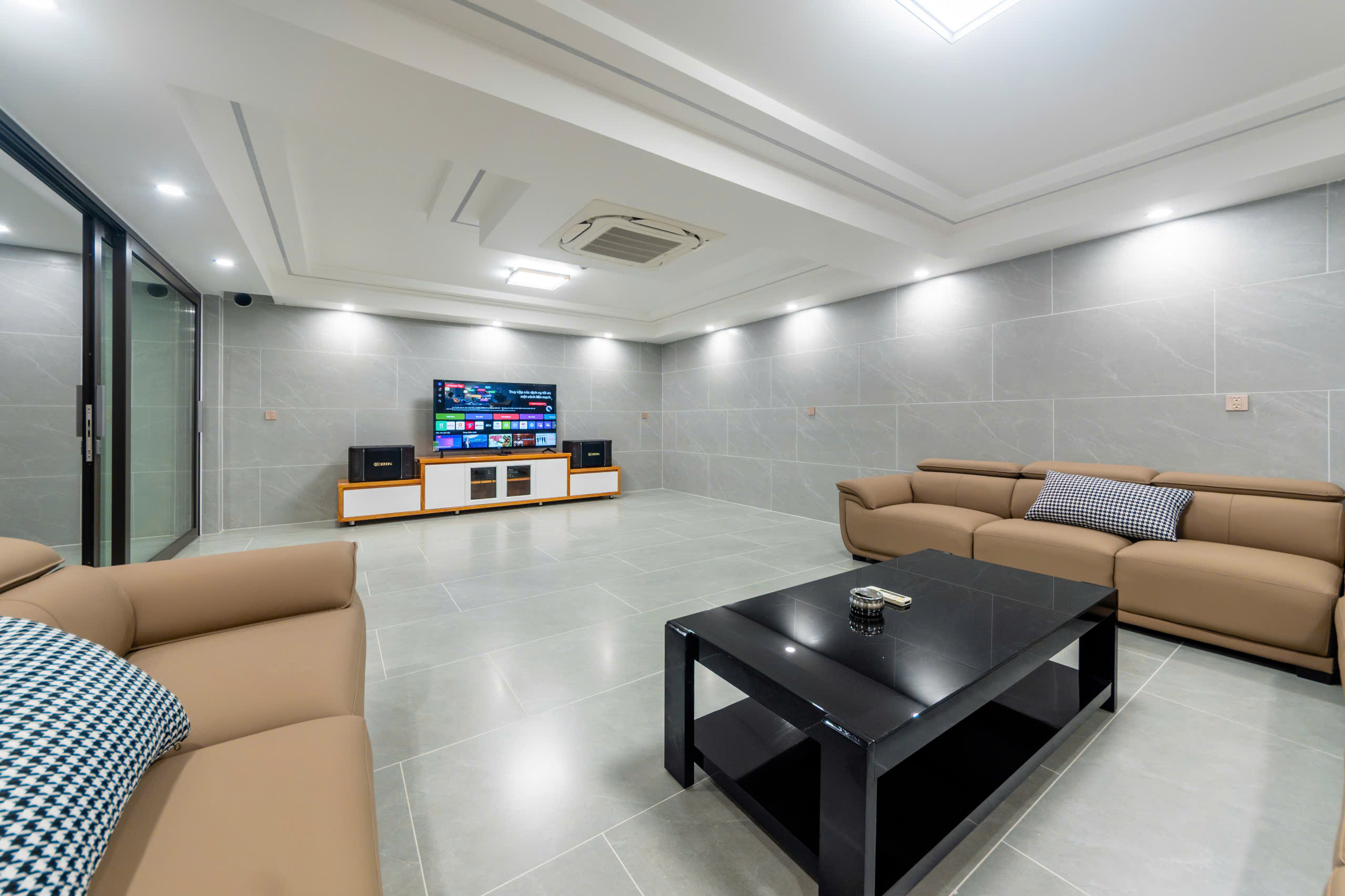 - Biệt thự Vũng Tàu FS27 được trang bị sẵn 1 phòng karaoke có máy lạnh ở tầng hầm.