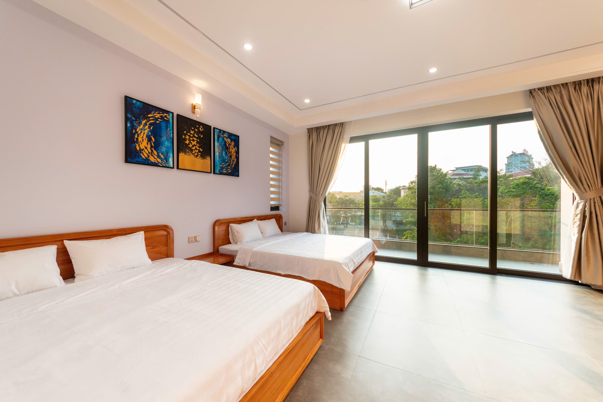 - 7 phòng ngủ (11 giường) – đều được trang bị Tivi trong phòng, nội thất hiện đại, mới. Đặc biệt, có 2 phòng ngủ master rộng, có ban công.