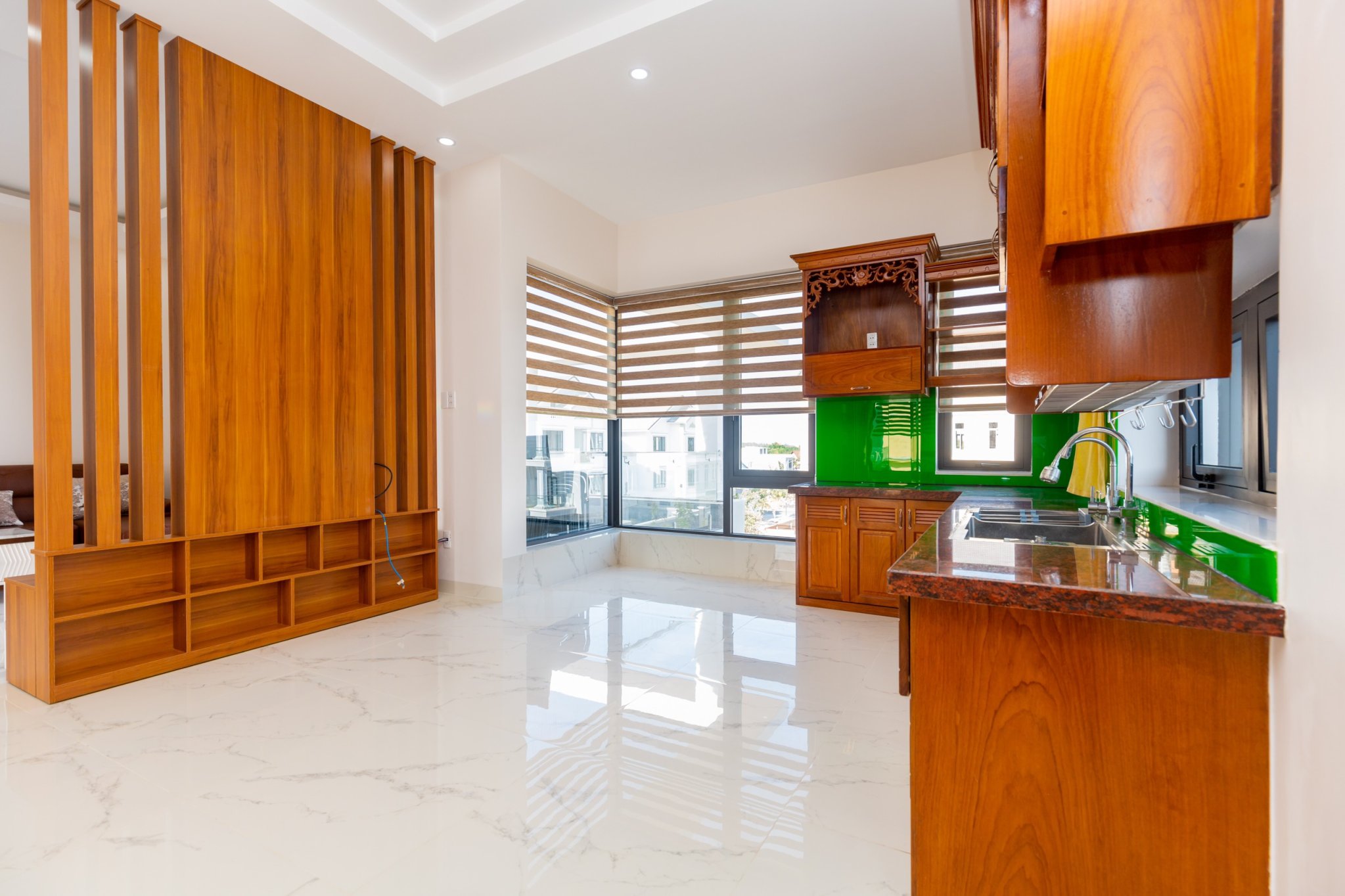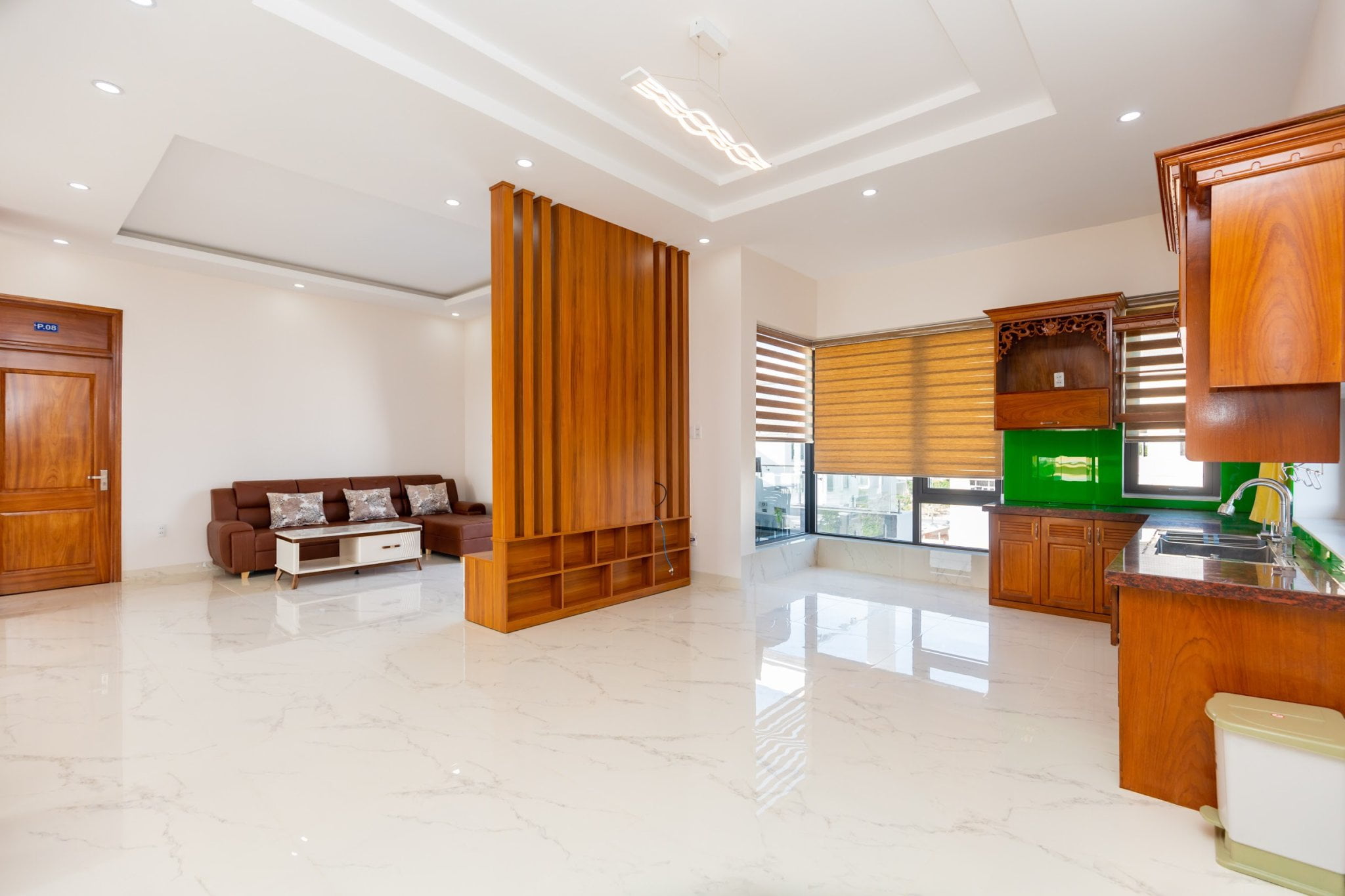 - 1 phòng khách, 1 nhà bếp trang bị đầy đủ tiện nghi – dụng cụ nấu ăn