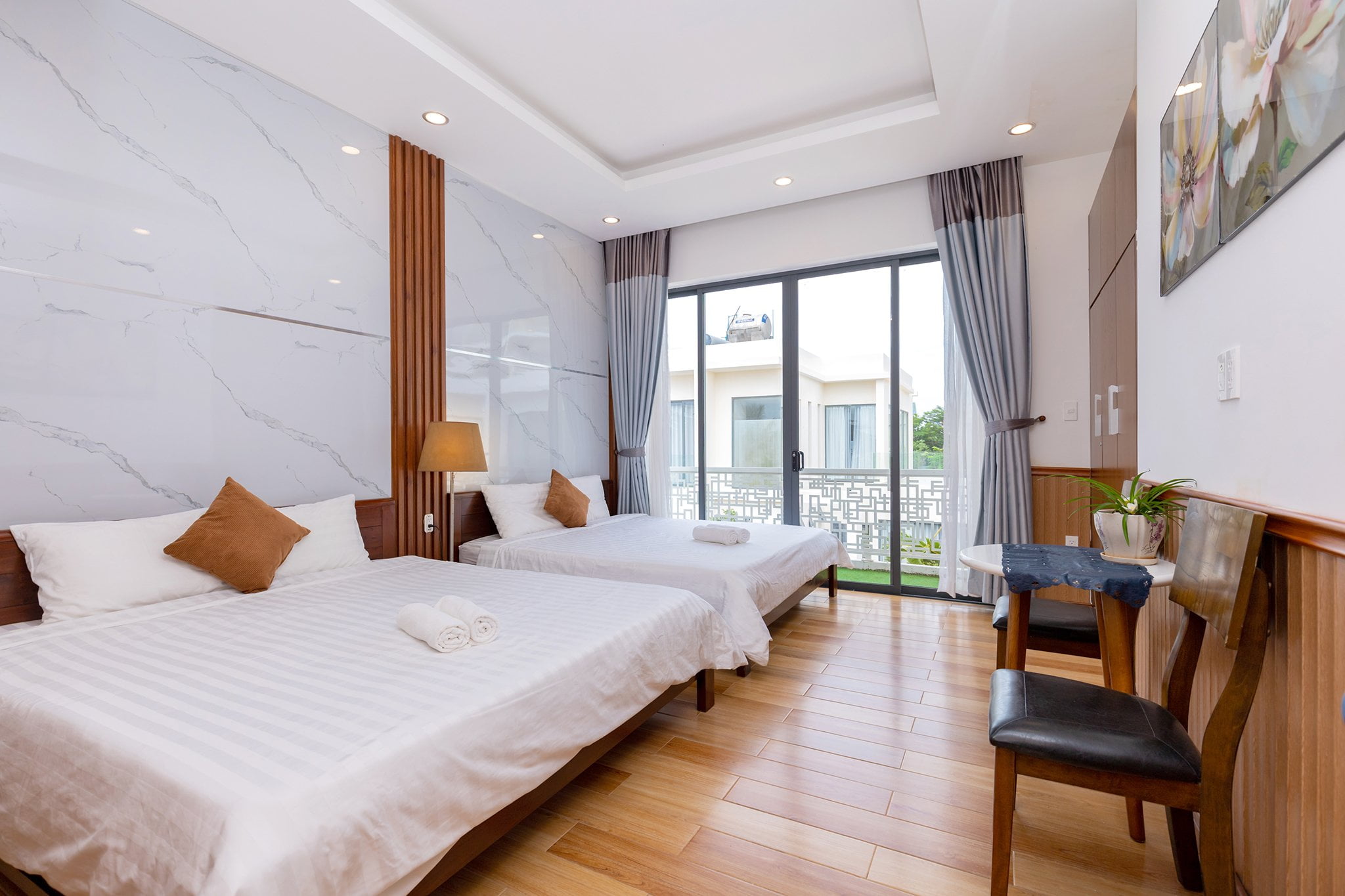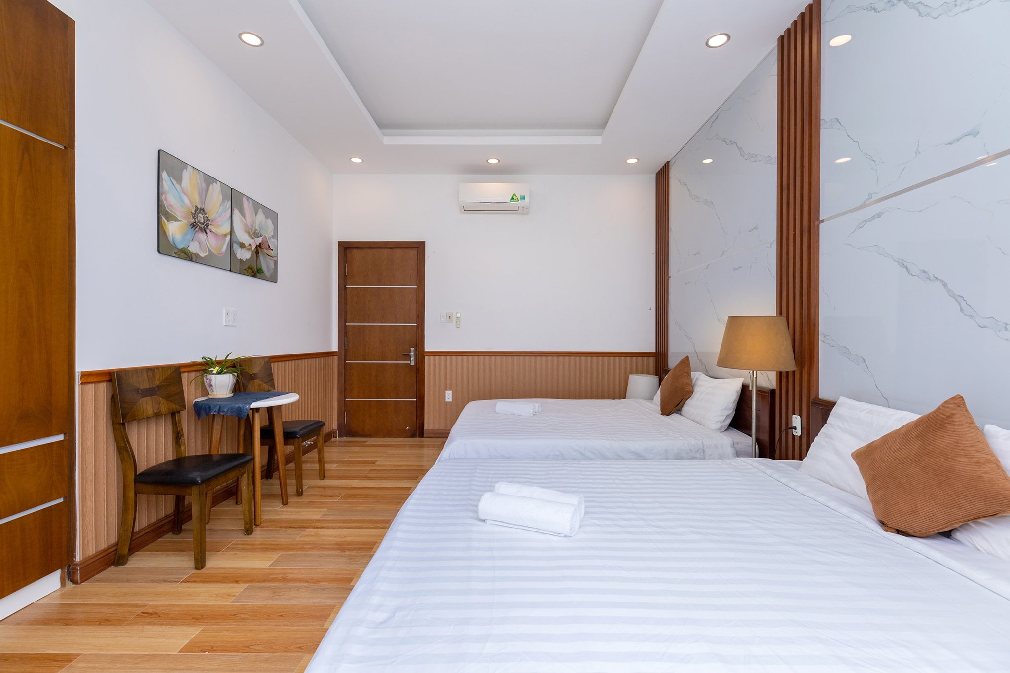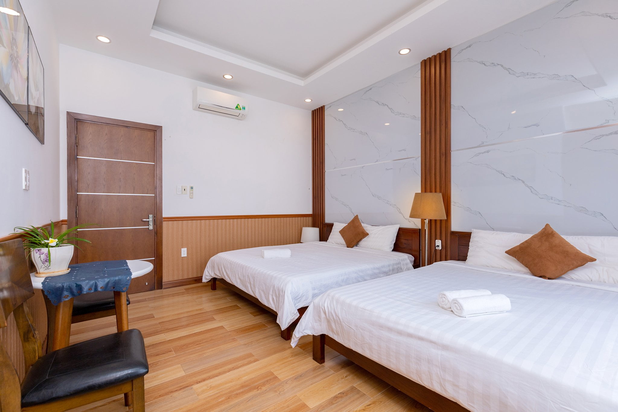 • Phòng ngủ hiện đại, ấm cúng, mỗi phòng có giường đôi và nệm phụ.