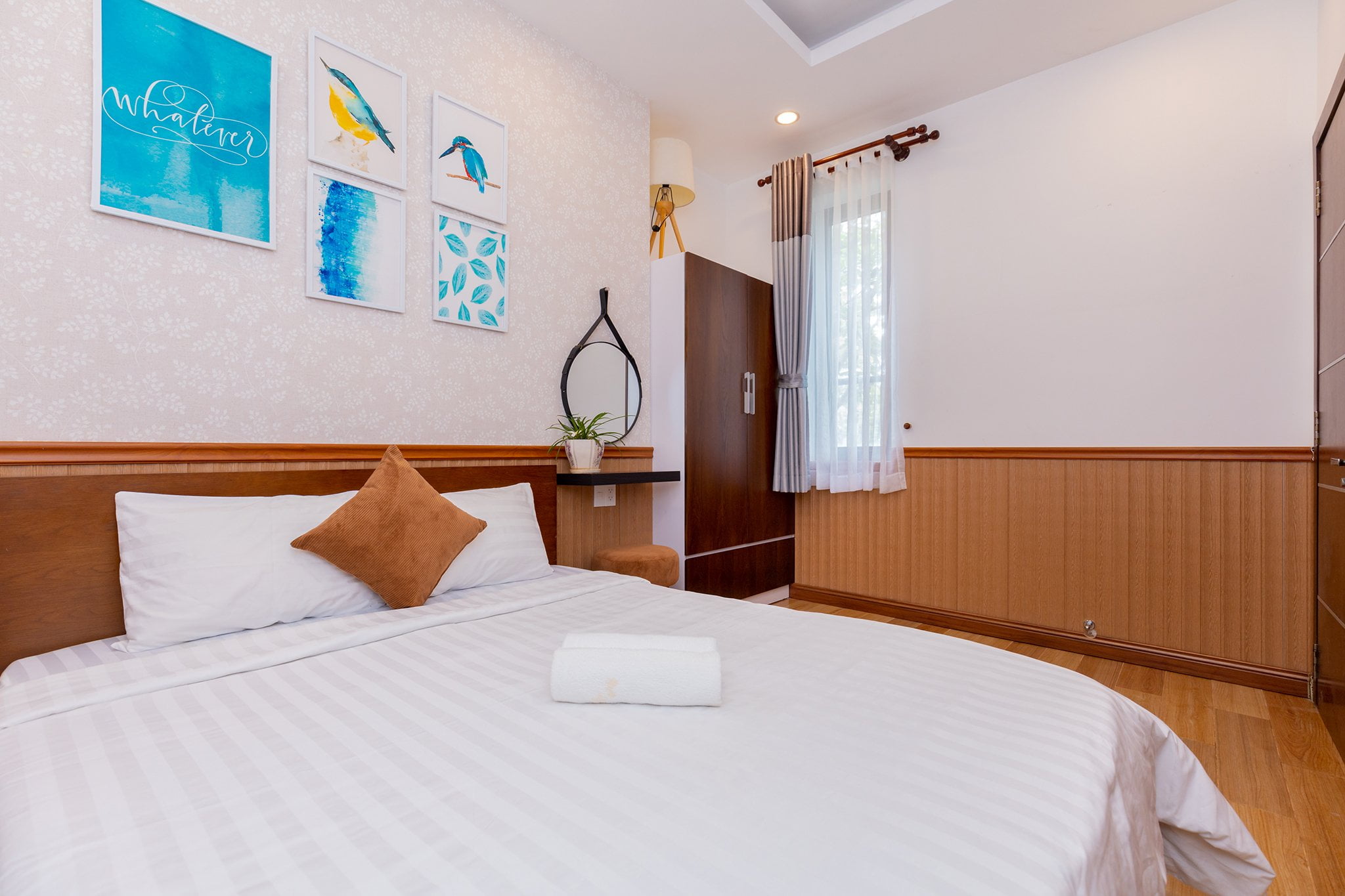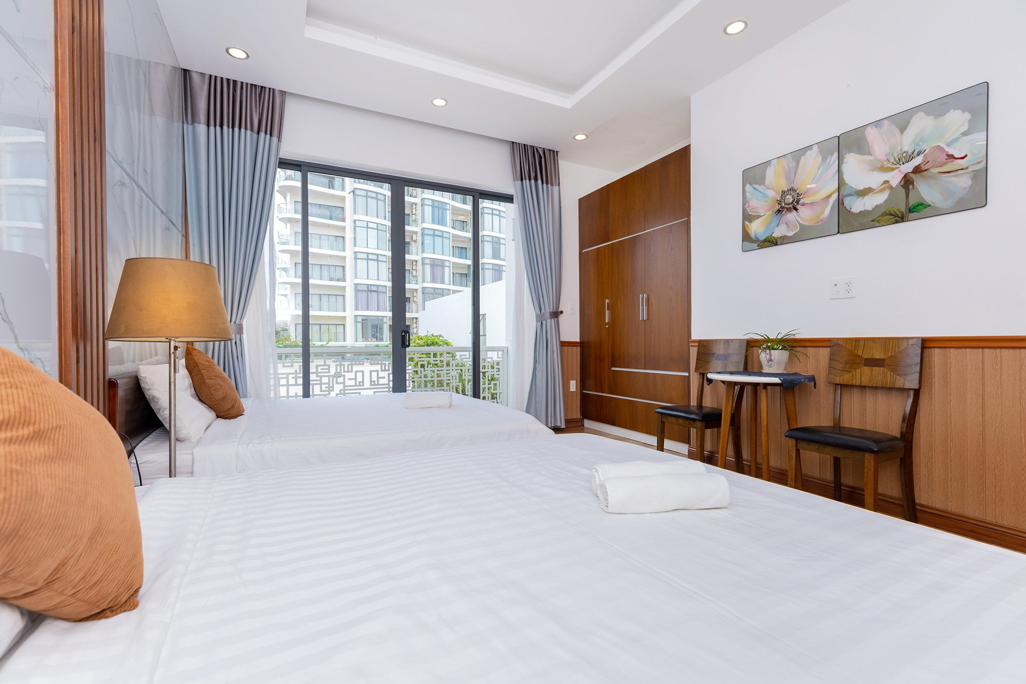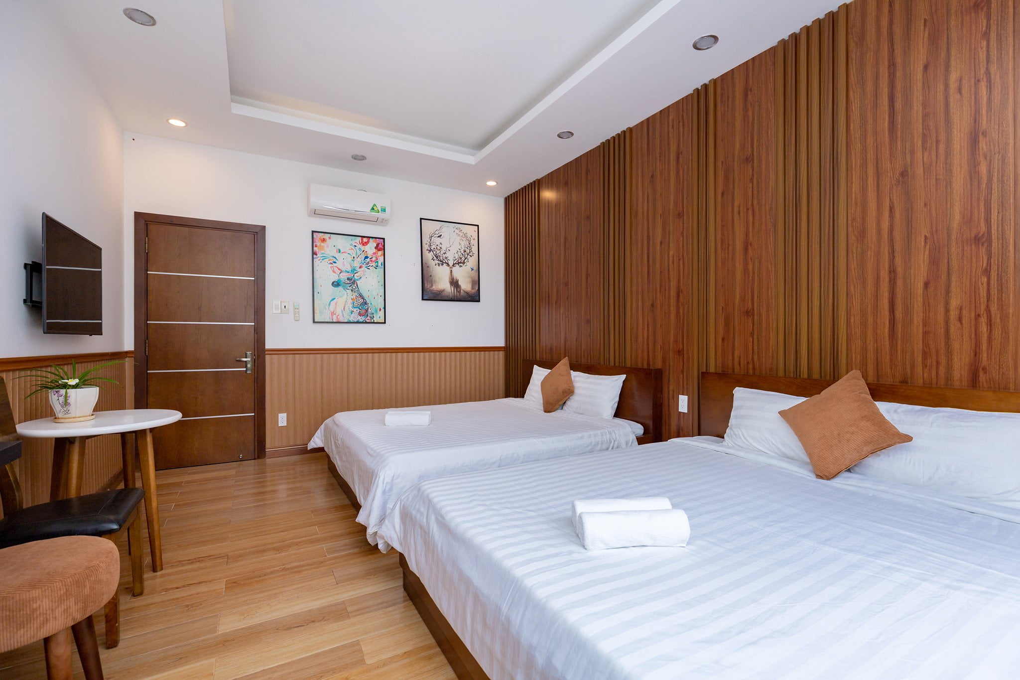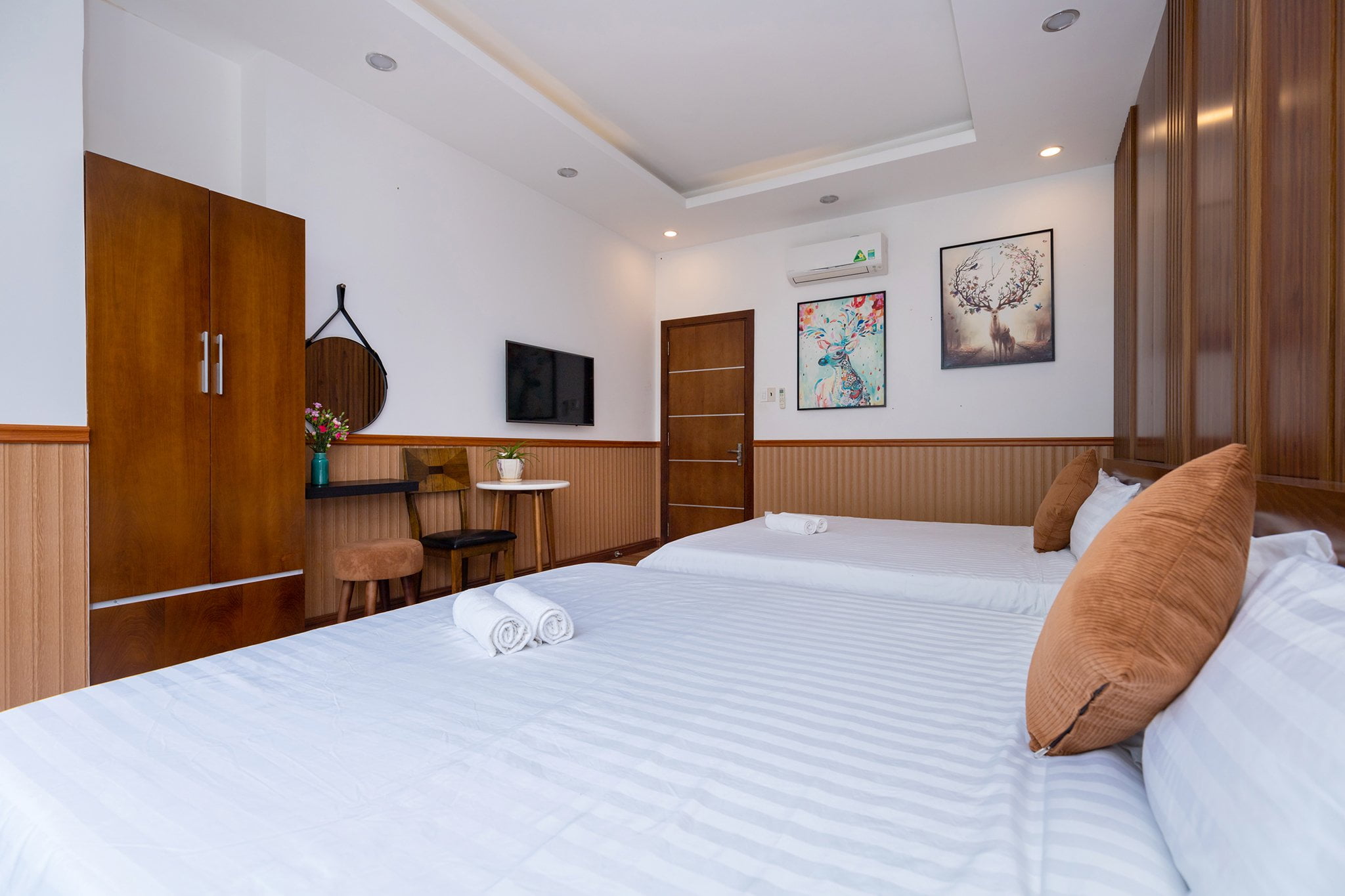 • Phòng ngủ hiện đại, ấm cúng, mỗi phòng có giường đôi và nệm phụ.