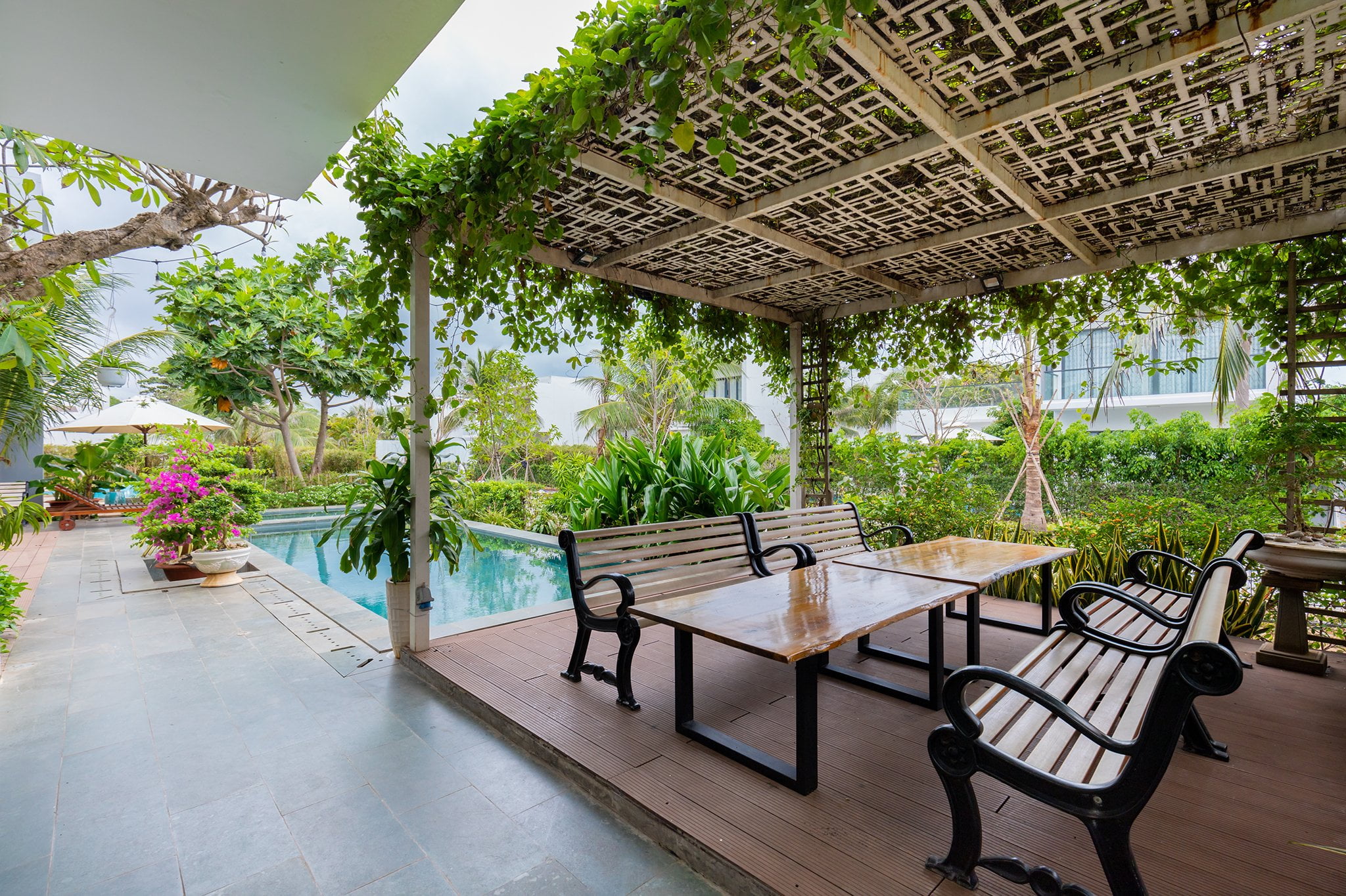 • Không gian BBQ bên cạnh hồ bơi (có mái che)