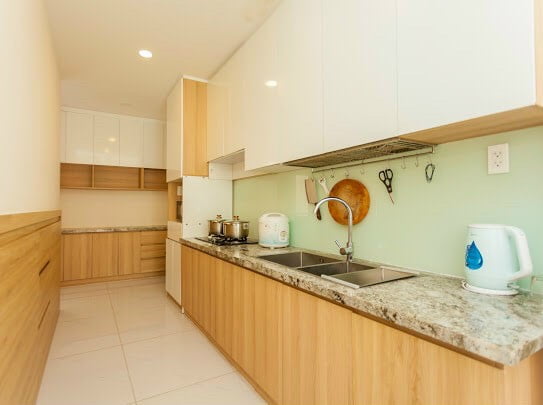 - 1 phòng khách, 1 nhà bếp không gian mở, trang bị đầy đủ tiện nghi – dụng cụ nấu ăn