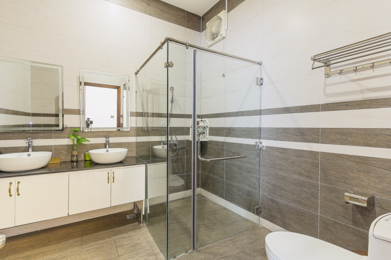 - Tầng 1: 3 phòng đều có wc riêng, trong đó có 2 phòng 1 giường và 1 phòng 2 giường