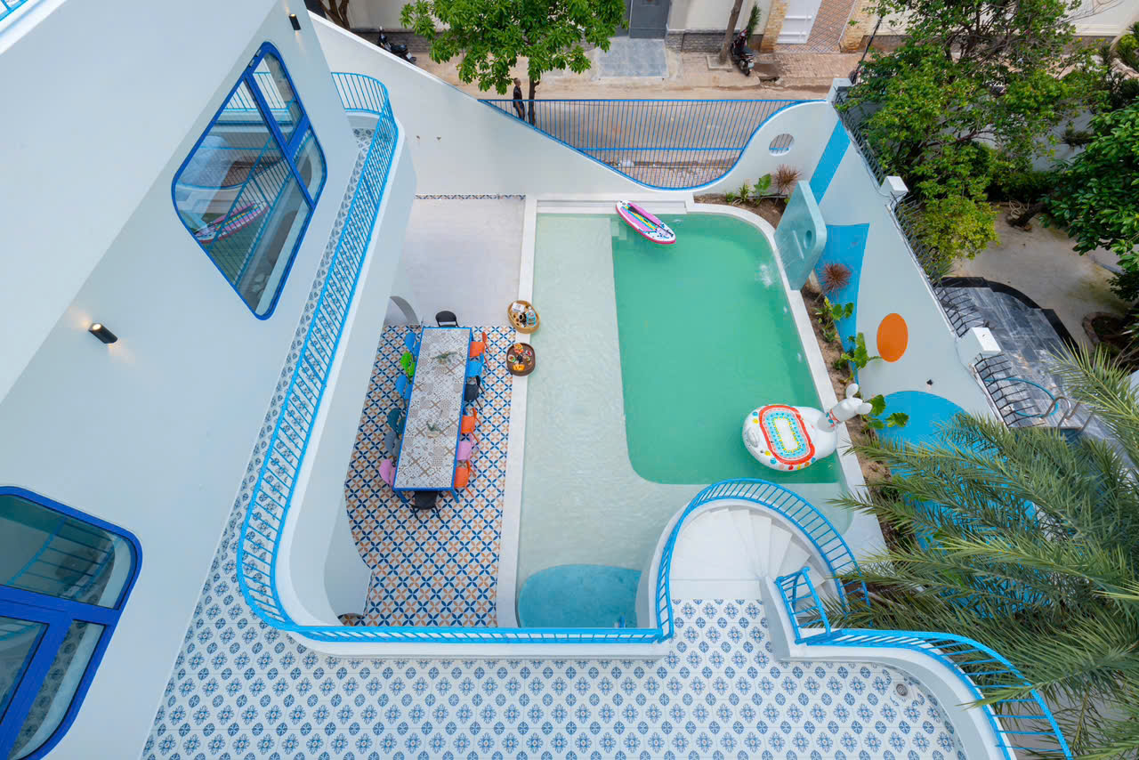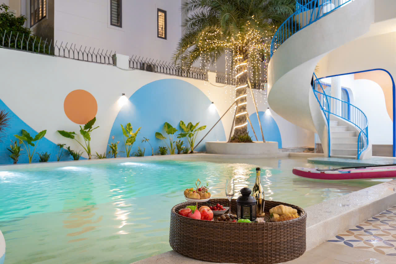 SAN HÔ VILLA – SANTO – GẦN THÁP TAM THẮNG 350M, FREE BIDA MINI, KARAOKE, HỒ BƠI ĐÁ MÀI, PHONG CÁCH SANTORINI