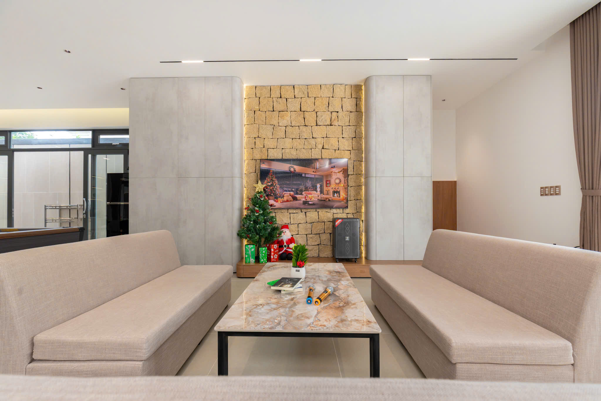 - 1 phòng khách nội thất hiện đại, được trang bị máy lạnh mát mẻ