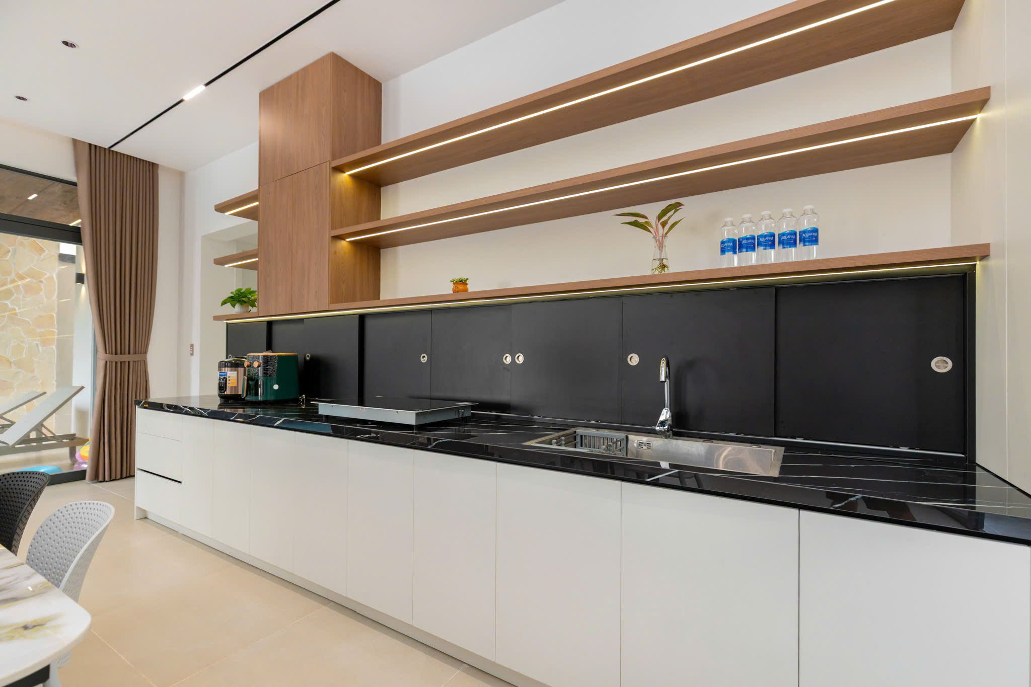 - Không gian phòng bếp lớn, đầy đủ tiện nghi, dụng cụ bếp…