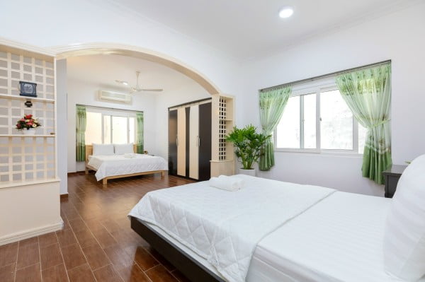 - 6 phòng ngủ – 12 giường – 6wc (1 phòng 1 giường, 4 phòng 2 giường, 1 phòng tập thể 3 giường ), sức chứa lên đến 30 người lớn bé.