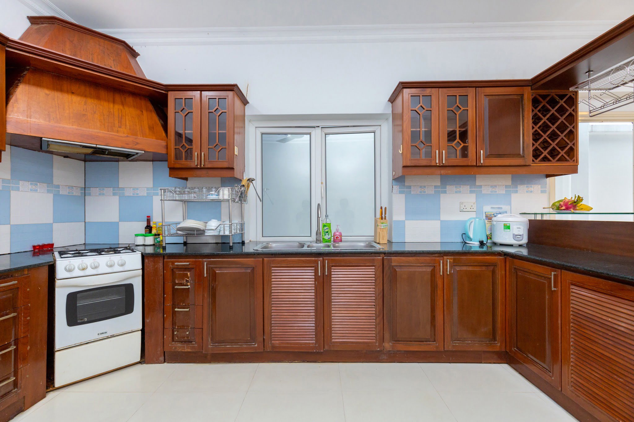 - 1 phòng bếp đầy đủ tiện nghi bếp, dụng cụ nấu ăn, tủ lạnh, lò vi sóng…
