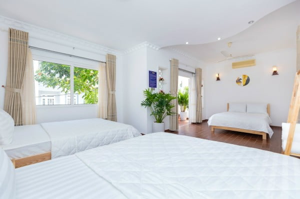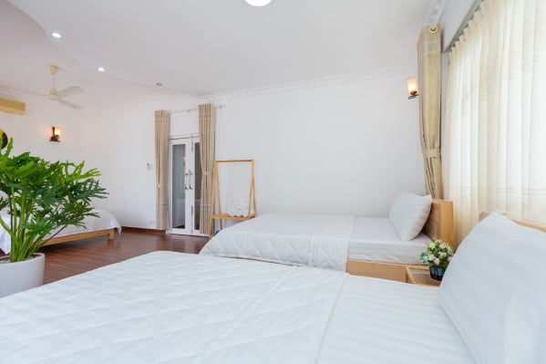 - 6 phòng ngủ – 12 giường – 6wc (1 phòng 1 giường, 4 phòng 2 giường, 1 phòng tập thể 3 giường ), sức chứa lên đến 30 người lớn bé.