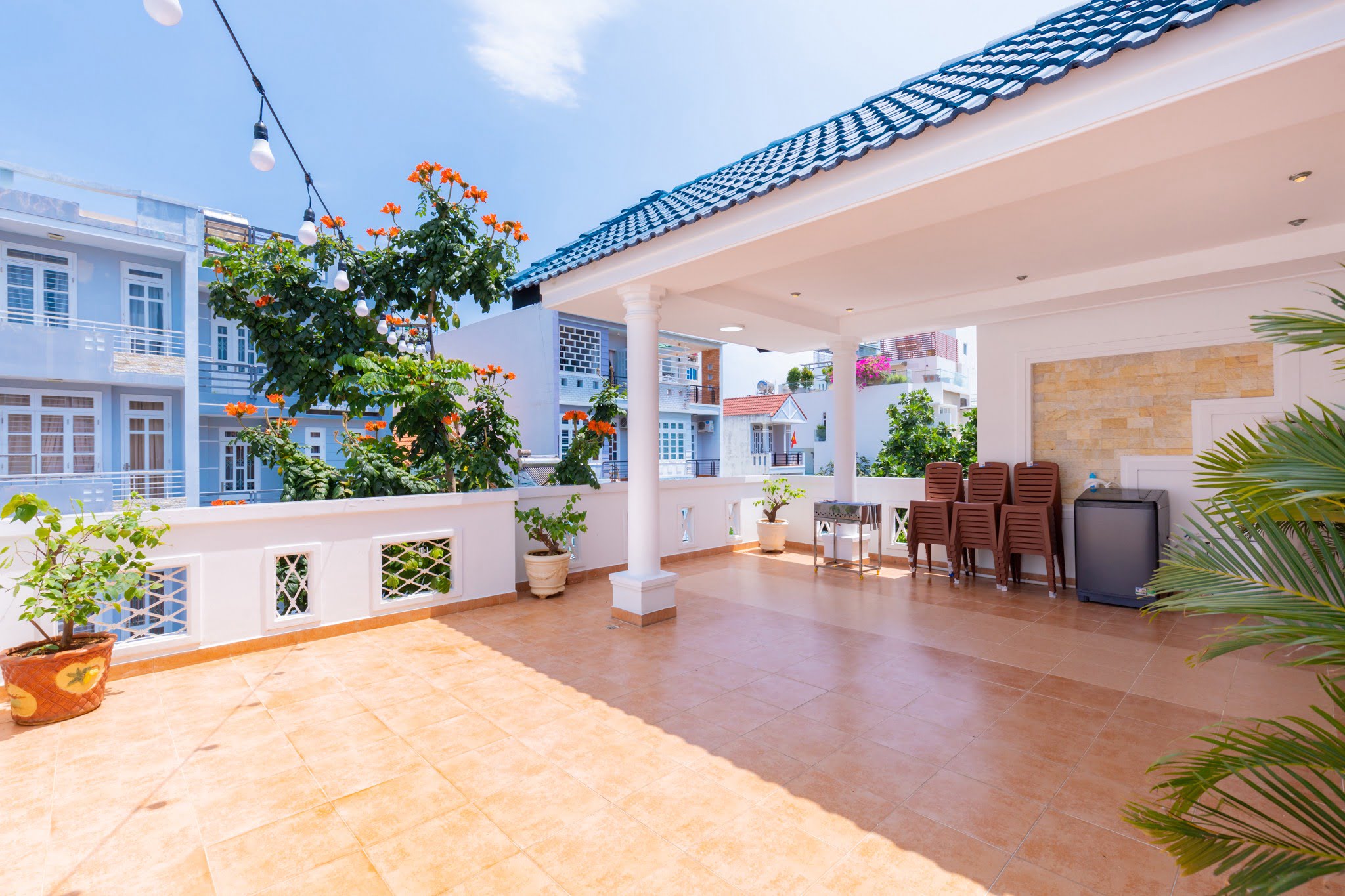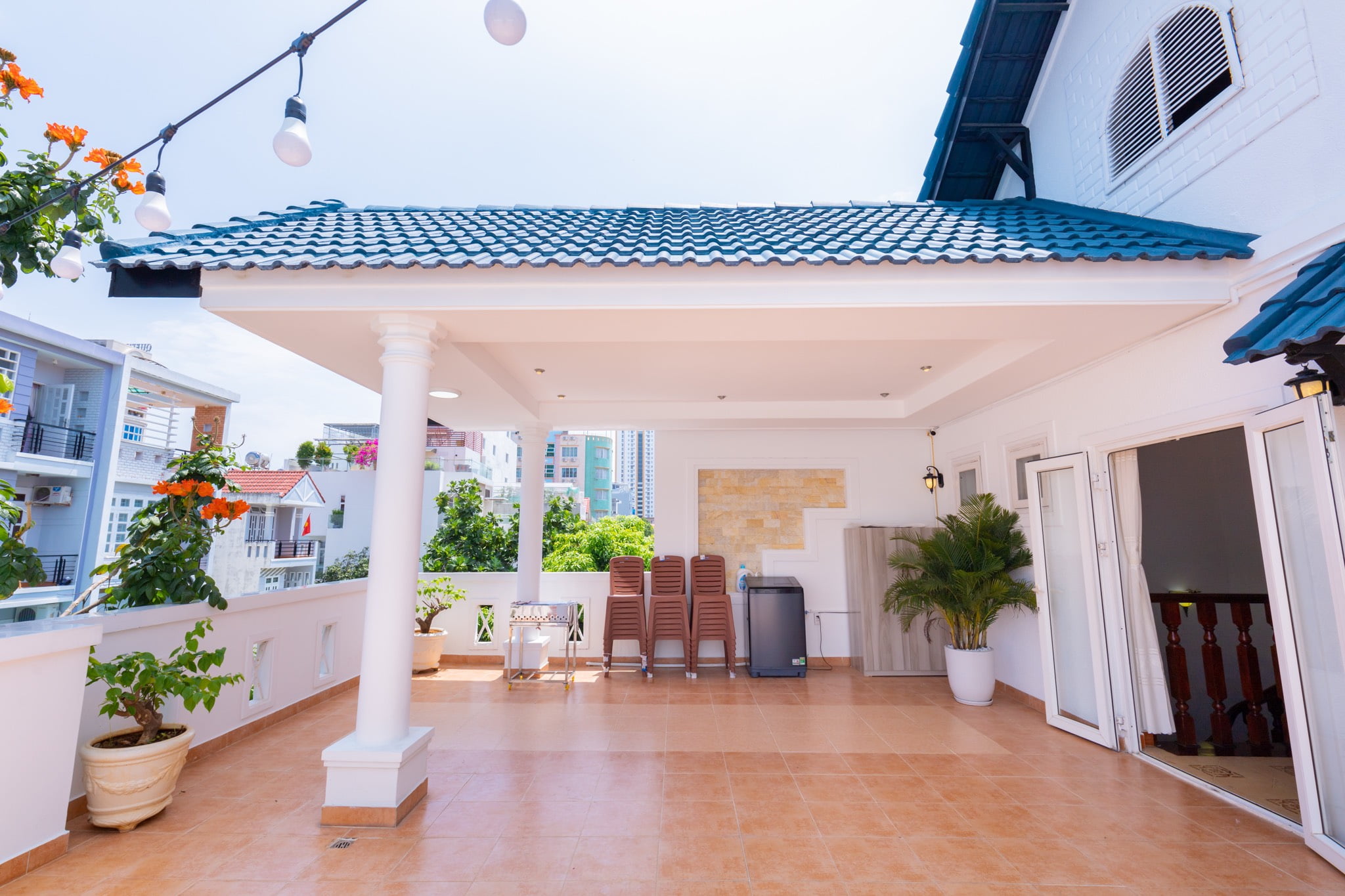 - Sân BBQ rộng, có sẵn bếp nướng và bộ bàn ăn ngoài trời.