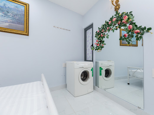 - Đầy đủ dụng cụ bếp + gia vị cơ bản, tủ lạnh, bàn chải kem đánh răng, dầu gọi, bàn ủi, máy sấy tóc…